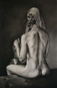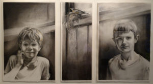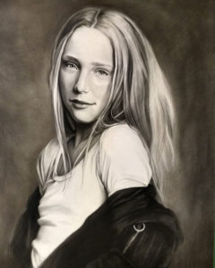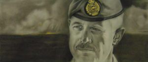 "Major Rick Dunning", 15 x 22 inches, charcoal and Acrylic gold on paper, (SOLD)