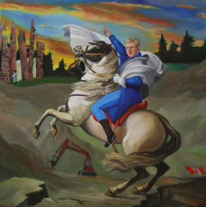 "Saint Harper" (Prime Minister Stephen Harper, commisioned for an exhibition, interpretations of Harper through Cube Gallery Ottawa), 30 x 30 inches, Oil on canvas