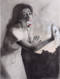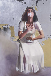 This project is the result of a three years’ work made possible by the generous sharing of everyone who has entrusted me with their personal stories and images. Some paintings are complete, and others are not, as is the process of healing. In every work I seek to capture the essence of those who I have painted or drawn in hopes of creating a dialogue with the viewer. Their gaze throughout the picture plane, pensive faces and the dreamy use of reflective metals is a means to express their realness of emotions, to preserve an aspect of our human condition. The project also holds some of my self portraits as response to the stories I have heard.